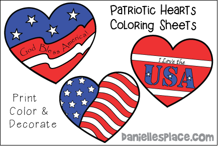 Patriotic Hearts Coloring Sheets or Posters