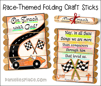 Children will have a great time creating race-themed fan-folding canvases using craft sticks. To prepare this craft, Bible verse patterns are glued to the front and back of a row of craft sticks. Kids can add their personal touches by coloring the canvases and incorporating their own designs. Once they finish decorating their canvases, an adult will cut alternating lines on both sides of the sticks, allowing them to be folded into an attractive pile. To complete the project, students can attach a beautiful string or ribbon, enabling them to hang their creations proudly for everyone to see!