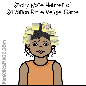 4. If you have older children who read well, you can break the children up into teams. Give each team a list of the Bible verses below and a pad of sticky notes. Tell them to pick one child on their team to wear the helmet. On the word “go” have the children in the teams work together to look up the verses and write them on sticky notes. The team who writes all the verses on the sticky notes and places them on the head of one of the children on their team first wins.