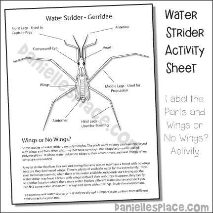 A water strider that lives in a wetland during the rainy season may have a brood with no wings because they don’t need wings. There is plenty of available water for the entire family. However, in the late summer, when there is less water available and ponds start drying up; the water strider may have a brood with wings so that if their resources disappear, they can fly to another location where there more water. Explore different water sources and see if you can find some water striders with wings and some without wings. Study the environment.