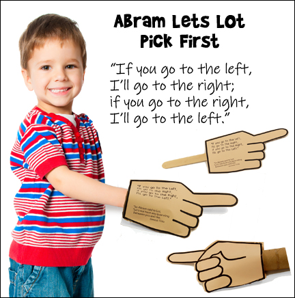 Use the Abram and Lot activity sheet above to review the story. When you get to the part about Abram telling lot to pick a direction, have your children turn the Abram to face in the direction you say.
