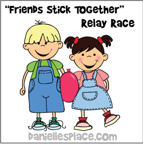 Before class mix cotton balls and macaroni noodles together and place half the mixture in one bowl and the other half in another bowl. Divide the children up into two teams. Pick two children to be "Sticky Friends". Place masking tape or duct tape around the "Sticky Friends", sticky side out. Stick the end of the tape to the child then bend it back so the sticky side is out. Bring the tape all the way around the child and back over to the beginning of the tape so that the tape goes all the way around the child. Designate one "Sticky Friend" to be noodles and the other cotton.