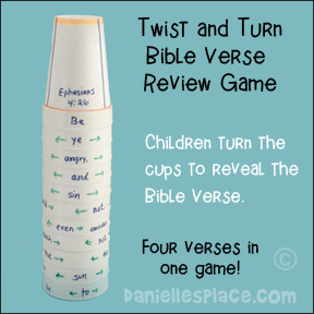 You can also use this game to review the books of the Bible. Give each player or team a set of cups with the words on them. On the word "go" see which team can stack the cups in order first without any of the cups falling off.
