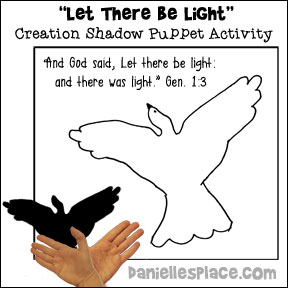4. Write "Let there be Light" at the top of each shadow puppet picture.