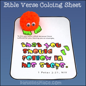 2. In class have your children color the picture and then talk about how we can follow in Jesus' steps using the words on the coloring sheet.