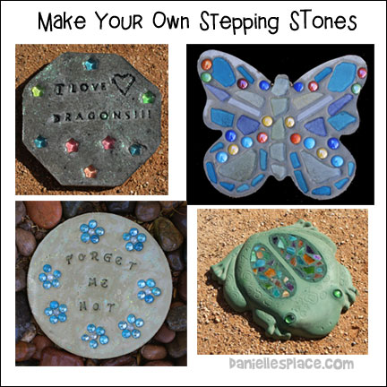 There are a lot of different craft kits available that provide everything you need to make the stones. (See the kits on the right-hand side of the page.) These kits will save you a lot of time finding everything you need. You can reuse the molds, and use different decorative items to make them all look different. Some of the kits come with letter stamps that can be used over and over. You can also buy the Letters and Numbers Stepping Stone Stamps separately.